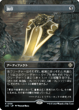 ほかにも、ドローが苦手な色のためにドロー能力のある装備品を使ったり、クリーチャーを強化するために《旗印》や《縫い合わせの旗》といったカードも利用できるでしょう。