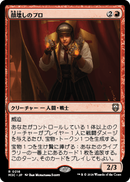 また、戦闘でも取引ができるかもしれません。対戦相手の1人が強力なクリーチャーを多数展開してきました。あと1マナあれば全体除去が唱えられるのにマナが足りません。《顔壊しのプロ》のダメージが通れば宝物・トークンが手に入って唱えられるようになりますが、どの対戦相手にも十分なブロッカーがいて攻撃が通らない見込みです。