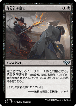 例えば、《大修道士、エリシュ・ノーン》とか、《大いなる歪み、コジレック》とか、全員にとって厄介なクリーチャーがいるとします。「《保安官を撃て》でそれを除去したいけれど、《速足のブーツ》が付けられてていて対象に取れない……」