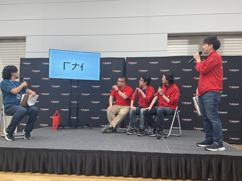「アートの一部分だけを見て当てるクイズ」、「カード名2画目までクイズ」など、マジックを題材にしたクイズを出題!来場者のみなさんにも参加していただきました!