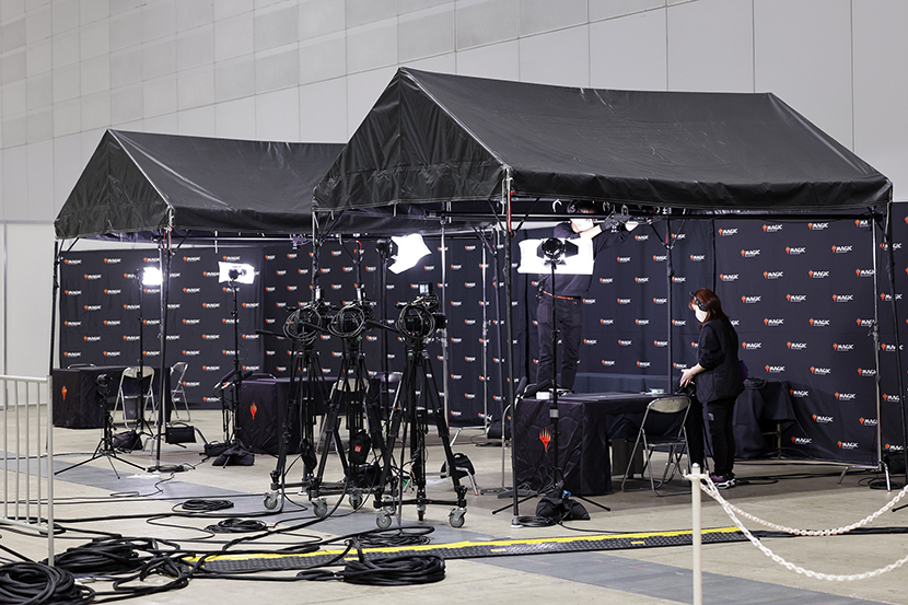 4回戦から、フィーチャーマッチの生中継が始まります。現在はまだフィーチャーエリアの設営中です。