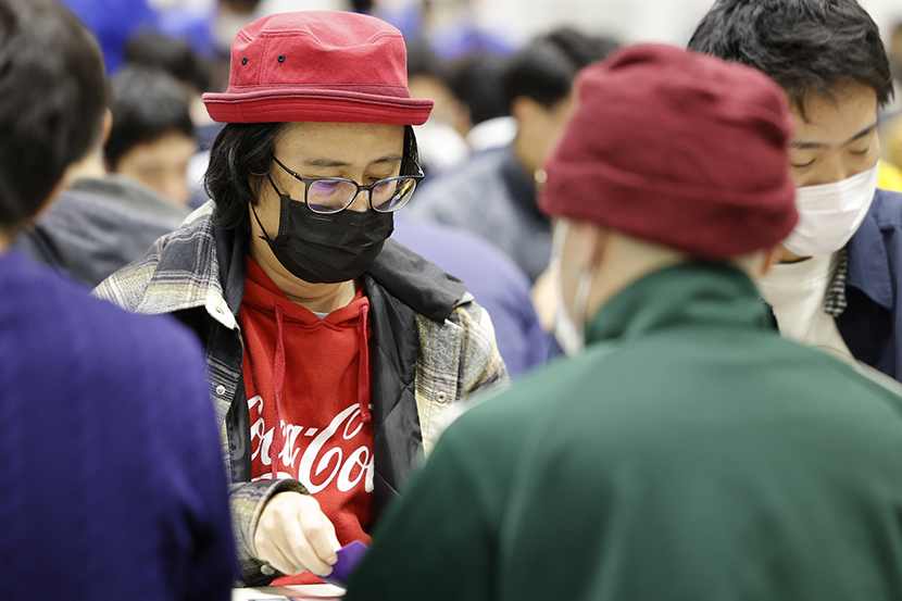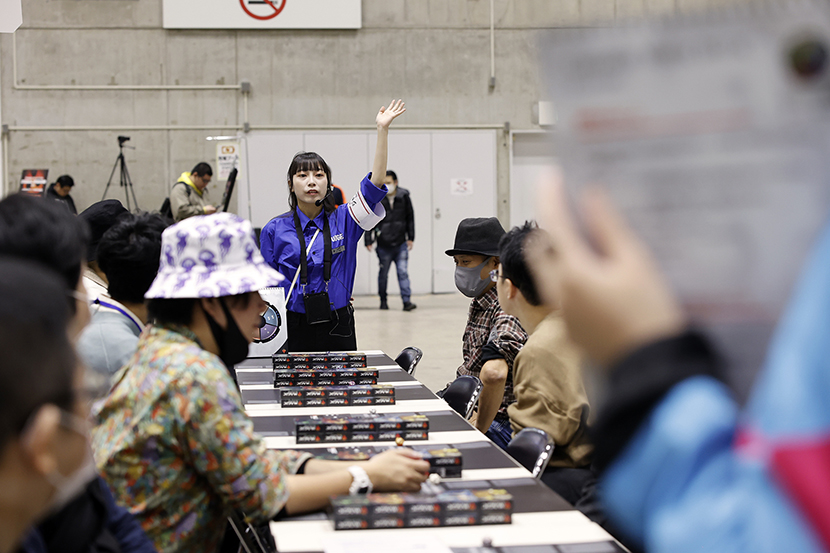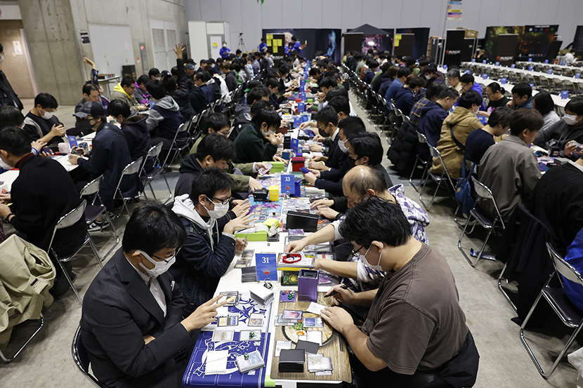 こちらでは約190人のプレイヤーが参加している「日本レガシー選手権・秋」が開催中。また、日曜には「日本ヴィンテージ選手権・秋」や、大勢で一度に対戦する大乱闘戦などもあります。カジュアルにゲームを楽しみたい方向けには、勝敗にかかわらずじゃんけんで賞品が配られるフレンドリーマッチなどもありますので、お気軽にどうぞ。