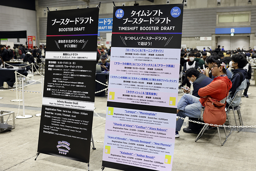 ブースタードラフトが遊べるエリアでは、「ローウィン」や「アラーラの断片」など、とても懐かしいパックを使った「タイムシフトブースタードラフト」も開催予定です。