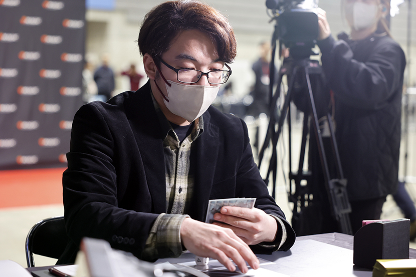 フィーチャーエリアでは、静かにシャッフルの音が響いていた。決勝へと挑む挑戦者たちの視線は、ただ対面の相手だけに向けられる──。