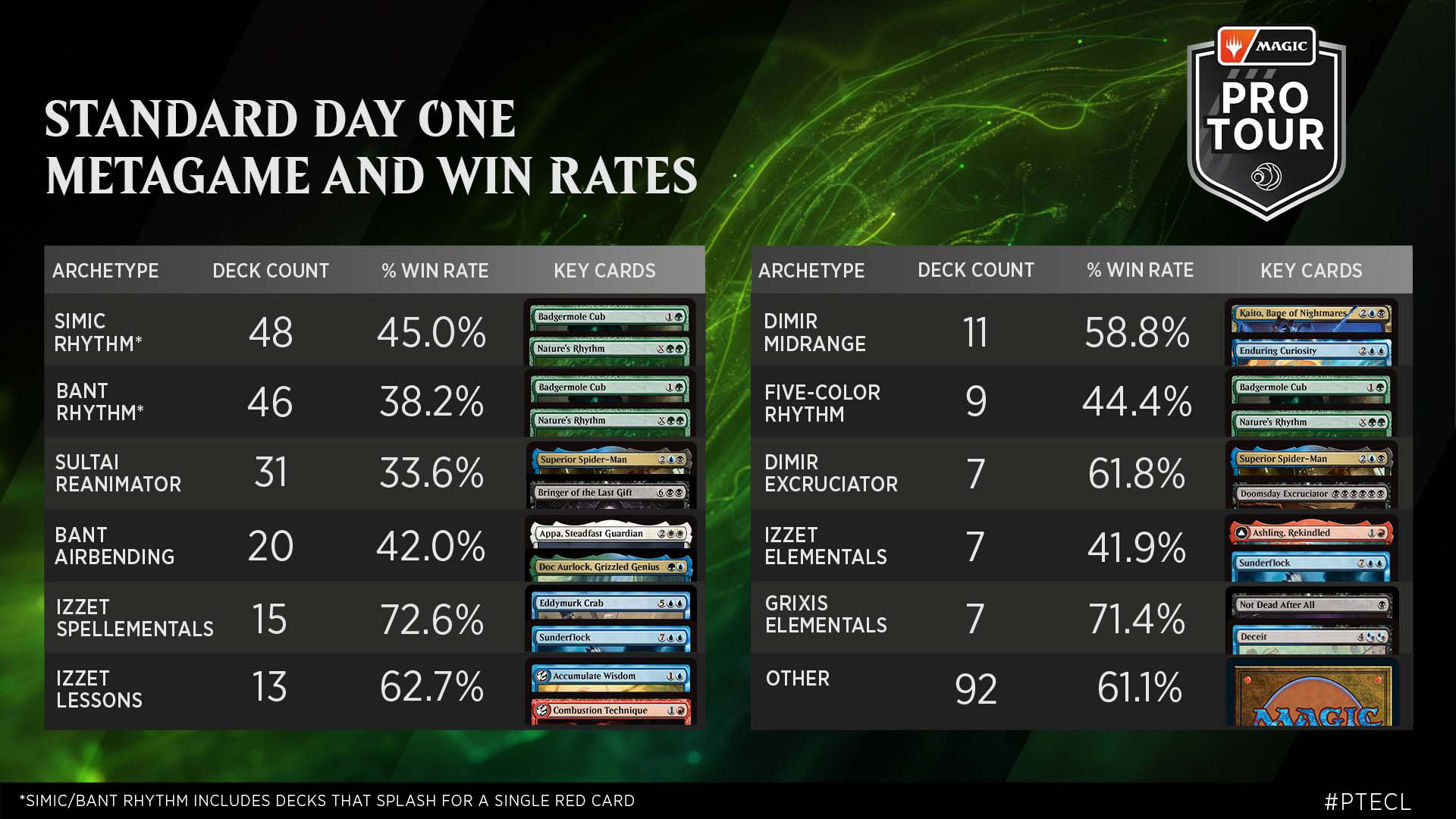 これはやや意外な結果だった。大会前はエルフが最も安定して強力だと考えられていたが、自己修正が働くドラフト環境の中で、白青マーフォークが予想以上の好成績を収めた。また黒と白が、最も成績の良いアーキタイプと悪いアーキタイプの双方に含まれているという興味深い二面性も見られる。総じて、『ローウィンの昏明』のドラフト環境は、多くのセットでは味わえない形でプロツアーのプレイヤーたちに挑戦を突きつけた。