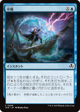 を支払わないかぎり、それを打ち消す。これによりその呪文が打ち消されたなら、それをオーナーの墓地に置く代わりに追放する。
