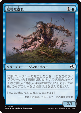 このクリーチャーが死亡したとき、「あなたのライブラリーから『悲惨な群れ』という名前のカード1枚を探し、公開し、あなたの手札に加える。その後、ライブラリーを切り直す。」を選んでもよい。