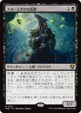 ,あなたがコントロールしていてアンタップ状態であるクリーチャー2体をタップする:飛行を持つ黒の5/5のデーモン・クリーチャー・トークン1体を生成する。このターンにクリーチャーが死亡していなければ起動できない。