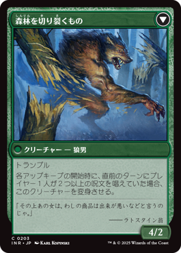 各アップキープの開始時に、直前のターンに呪文が唱えられていなかった場合、このクリーチャーを変身させる。