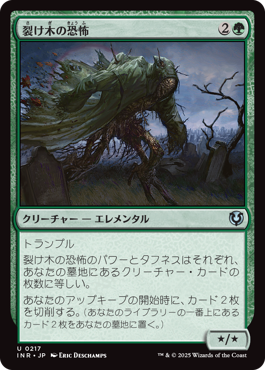 裂け木の恐怖のパワーとタフネスはそれぞれ、あなたの墓地にあるクリーチャー・カードの枚数に等しい。
