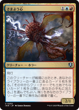 このクリーチャーが戦場に出たとき、あなたのライブラリーの一番上にあるカード6枚を見る。「その中からクリーチャーでも土地でもないカード1枚を公開し、あなたの手札に加える。」を選んでもよい。残りをあなたのライブラリーの一番下に無作為の順番で置く。