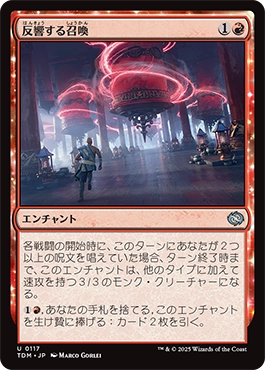 各戦闘の開始時に、このターンにあなたが2つ以上の呪文を唱えていた場合、ターン終了時まで、このエンチャントは、他のタイプに加えて速攻を持つ3/3のモンク・クリーチャーになる。