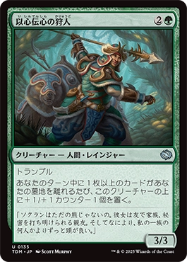 あなたのターン中に1枚以上のカードがあなたの墓地を離れるたび、このクリーチャーの上に+1/+1カウンター1個を置く。