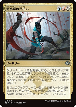 あなたのライブラリーの一番上にあるカード2枚を追放する。そのうちの1枚を選ぶ。次のあなたのターンの終了時まで、そのカードをプレイしてもよい。