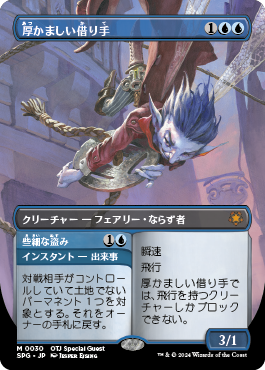 厚かましい借り手では、飛行を持つクリーチャーしかブロックできない。