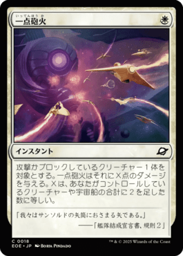 Focus Fire deals X damage to target attacking or blocking creature, where X is 2 plus the number of creatures and/or Spacecraft you control.