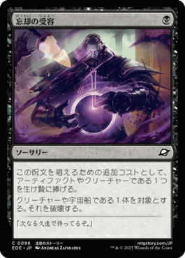 As an additional cost to cast this spell, sacrifice an artifact or creature.Destroy target creature or Spacecraft.