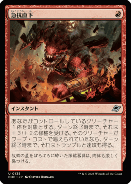 Target creature you control gets +3/+2 until end of turn. If that creature was cast for its warp cost, it also gains trample and haste until end of turn.