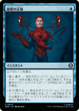 ・ 隠し通す ― あなたがコントロールしているクリーチャー1体を対象とする。ターン終了時まで、それは基本のパワーとタフネスが1/1の市民になり、呪禁を得る。