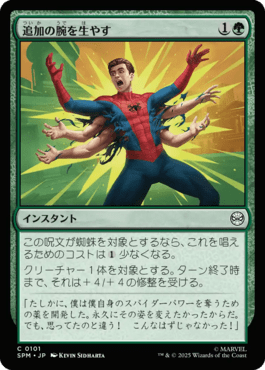 この呪文が蜘蛛を対象とするなら、これを唱えるためのコストは{1}少なくなる。