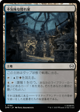 {4}, {T}:諜報1を行う。(あなたのライブラリーの一番上にあるカード1枚を見る。それをあなたの墓地に置いてもよい。)