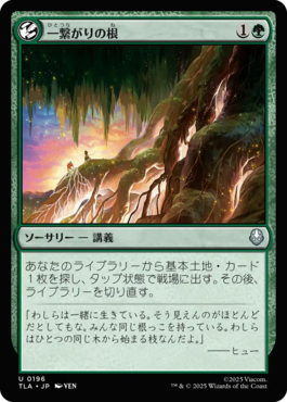 あなたのライブラリーから基本土地・カード1枚を探し、タップ状態で戦場に出す。その後、ライブラリーを切り直す。
