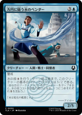 水の技{3}を行う:ターン終了時まで、このクリーチャーの基本のパワーとタフネスは5/2である。(あなたのアーティファクトやクリーチャーをタップすると、水の技コストを支払う助けとなる。1つにつきそれぞれ{1}を支払う。)