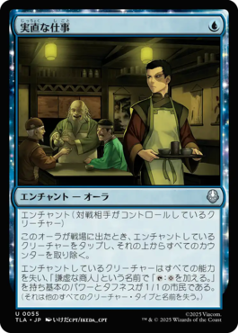 エンチャントしているクリーチャーはすべての能力を失い、「謙虚な商人」という名前で「{T}:{C}を加える。」を持ち基本のパワーとタフネスが1/1の市民である。(それは他のすべてのクリーチャー・タイプと名前を失う。)