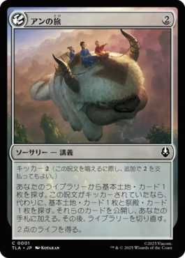あなたのライブラリーから基本土地・カード1枚を探す。この呪文がキッカーされていたなら、代わりに、基本土地・カード1枚と祭殿・カード1枚を探す。それらのカードを公開し、あなたの手札に加える。その後、ライブラリーを切り直す。
