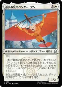 FlyingWhen Aang enters, airbend up to one other target nonland permanent. (Exile it. While it's exiled, its owner may cast it for