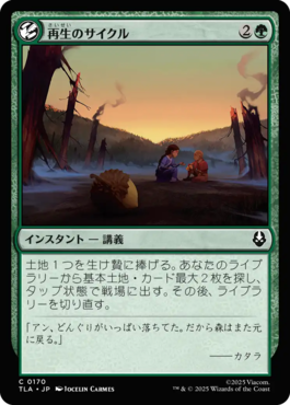 土地1つを生け贄に捧げる。あなたのライブラリーから基本土地・カード最大2枚を探し、タップ状態で戦場に出す。その後、ライブラリーを切り直す。