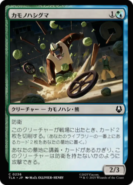 このクリーチャーが戦場に出たとき、カード2枚を切削する。(あなたのライブラリーの一番上にあるカード2枚をあなたの墓地に置く。)