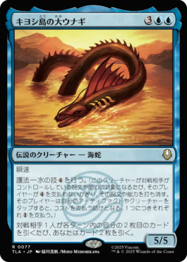 護法 ― 水の技{4}を行う。(このクリーチャーが対戦相手がコントロールしている呪文や能力の対象になるたび、そのプレイヤーが{4}を支払わないかぎり、その呪文や能力を打ち消す。そのプレイヤーは自分のアーティファクトやクリーチャーをタップすると、コストを支払う助けとなる。1つにつきそれぞれ{1}を支払う。)