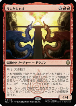 これが戦場に出たとき、あなたがこれを唱えていて、あなたの墓地に3枚以上のドラゴンや講義であるカードがある場合、伝説でないことを除きこれのコピーであるトークン1体を生成する。