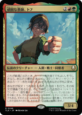 When Toph enters, you may discard a card. If you do, return target instant or sorcery card from your graveyard to your hand.Whenever you cast a spell, earthbend 1. If that spell is a Lesson, put an additional +1/+1 counter on that land. (Target land you control becomes a 0/0 creature with haste that's still a land. Put a +1/+1 counter on it. When it dies or is exiled, return it to the battlefield tapped.)