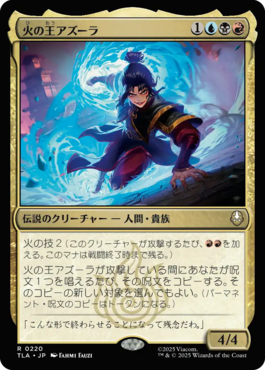 火の王アズーラが攻撃している間にあなたが呪文1つを唱えるたび、その呪文をコピーする。そのコピーの新しい対象を選んでもよい。(パーマネント・呪文のコピーはトークンになる。)
