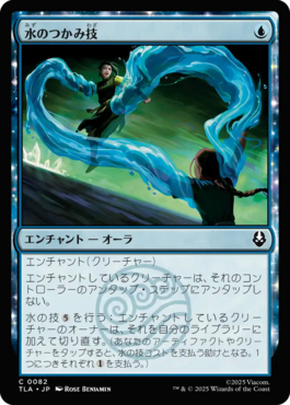 水の技{5}を行う:エンチャントしているクリーチャーのオーナーは、それを自分のライブラリーに加えて切り直す。(あなたのアーティファクトやクリーチャーをタップすると、水の技コストを支払う助けとなる。1つにつきそれぞれ{1}を支払う。)