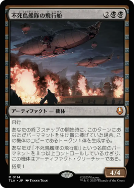 あなたが「不死鳥艦隊の飛行船」という名前のパーマネントを8つ以上コントロールしているかぎり、この機体はアーティファクト・クリーチャーである。