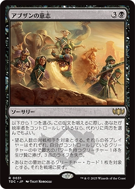 ・ 望む人数の対戦相手を対象とする。それらの各プレイヤーはそれぞれ、自分がコントロールしているクリーチャーの中で最大のパワーを持つクリーチャー1体を生け贄に捧げ、3点のライフを失う。