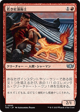 あなたがインスタントやソーサリーである呪文1つを唱えるたび、赤の1/1のエレメンタル・クリーチャー・トークン1体を生成する。