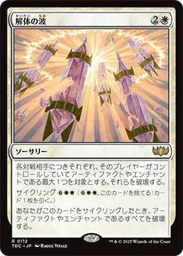 各対戦相手につきそれぞれ、そのプレイヤーがコントロールしていて、アーティファクトやエンチャントである最大1つを対象とする。それらを破壊する。