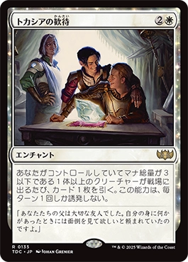 あなたがコントロールしていてマナ総量が3以下である1体以上のクリーチャーが戦場に出るたび、カード1枚を引く。この能力は、毎ターン1回しか誘発しない。