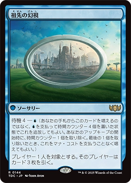 を支払って時間カウンター4個を置いた状態でこれを追放してもよい。あなたのアップキープの開始時に、時間カウンター1個を取り除く。最後の1個を取り除いたとき、これをマナ・コストを支払うことなく唱えてもよい。)