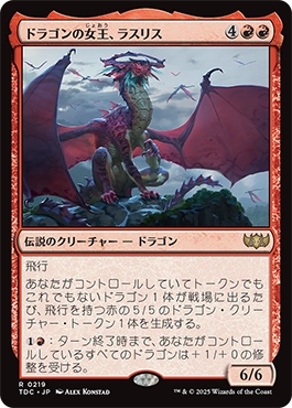 あなたがコントロールしていてトークンでもこれでもないドラゴン1体が戦場に出るたび、飛行を持つ赤の5/5のドラゴン・クリーチャー・トークン1体を生成する。