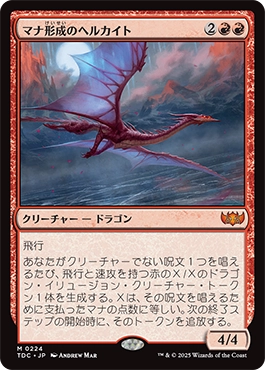 あなたがクリーチャーでない呪文1つを唱えるたび、飛行と速攻を持つ赤のX/Xのドラゴン・イリュージョン・クリーチャー・トークン1体を生成する。Xは、その呪文を唱えるために支払ったマナの点数に等しい。次の終了ステップの開始時に、そのトークンを追放する。