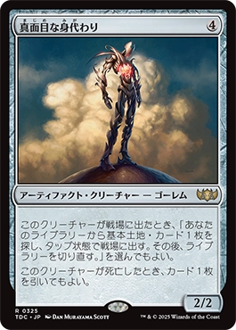 このクリーチャーが戦場に出たとき、「あなたのライブラリーから基本土地・カード1枚を探し、タップ状態で戦場に出す。その後、ライブラリーを切り直す。」を選んでもよい。
