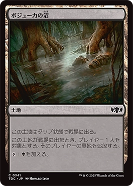この土地が戦場に出たとき、プレイヤー1人を対象とする。そのプレイヤーの墓地を追放する。