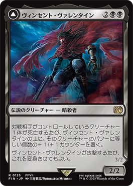 対戦相手がコントロールしているクリーチャー1体が死亡するたび、ヴィンセント・ヴァレンタインの上に、そのクリーチャーのパワーに等しい個数の+1/+1カウンターを置く。