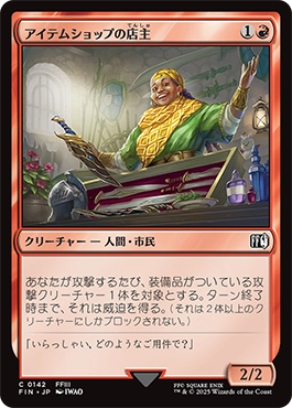 あなたが攻撃するたび、装備品がついている攻撃クリーチャー1体を対象とする。ターン終了時まで、それは威迫を得る。(それは2体以上のクリーチャーにしかブロックされない。)