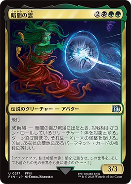 波動砲 ― 暗闇の雲が戦場に出たとき、対戦相手がコントロールしているクリーチャー1体を対象とする。ターン終了時まで、それは-X /-Xの修整を受ける。Xは、あなたの墓地にあるパーマネント・カードの枚数に等しい。